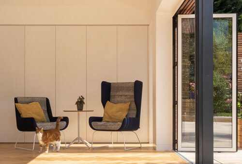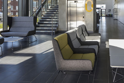 The high-back Hush Chair brings the classic wing-back chair style into contemporary settings, where its wrap-around backrest provides a sense of privacy. A low-back version is also available. Both models are designed for comfort as well as customization, with a supportive, upright seating position and wide variety of available upholstery options.