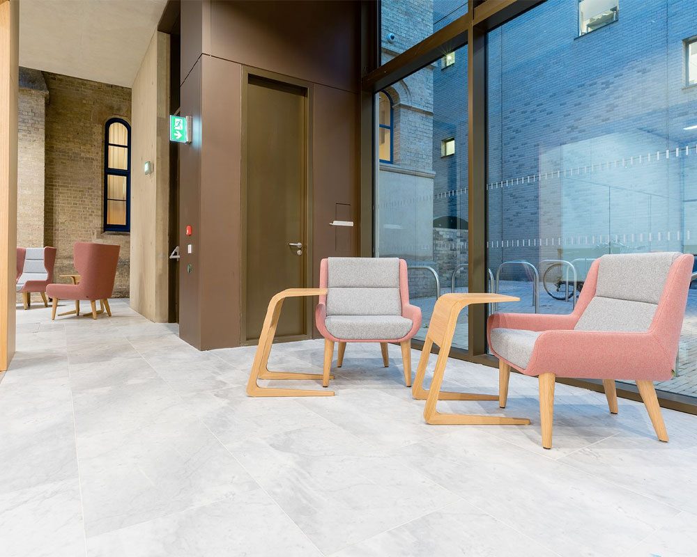 The high-back Hush Chair brings the classic wing-back chair style into contemporary settings, where its wrap-around backrest provides a sense of privacy. A low-back version is also available. Both models are designed for comfort as well as customization, with a supportive, upright seating position and wide variety of available upholstery options.