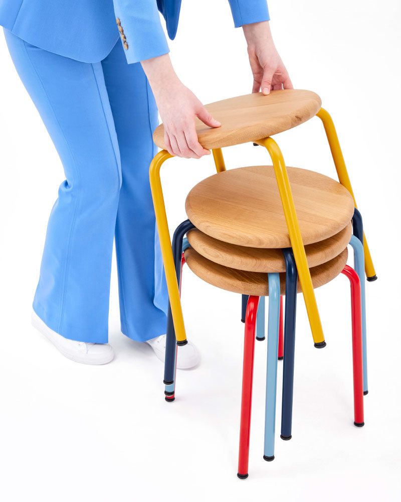 The warmly familiar and intricately crafted Penny Stool embodies NaughtOne’s ethos of absolute simplicity. Its timeless design can be dressed up or down with 16 different leg colour choices and a top available in solid oak or walnut. Penny is available in low (stackable four-high), counter, and bar heights, easily finding a home across workplace, education, and hospitality spaces. Robust and durable, it passed stringent testing in both Europe and North America and is backed by a 10-year warranty. At the end of its long life, you can simply return Penny to NaughtOne via our take-back programme, and we’ll be sure its materials make it to the right place.