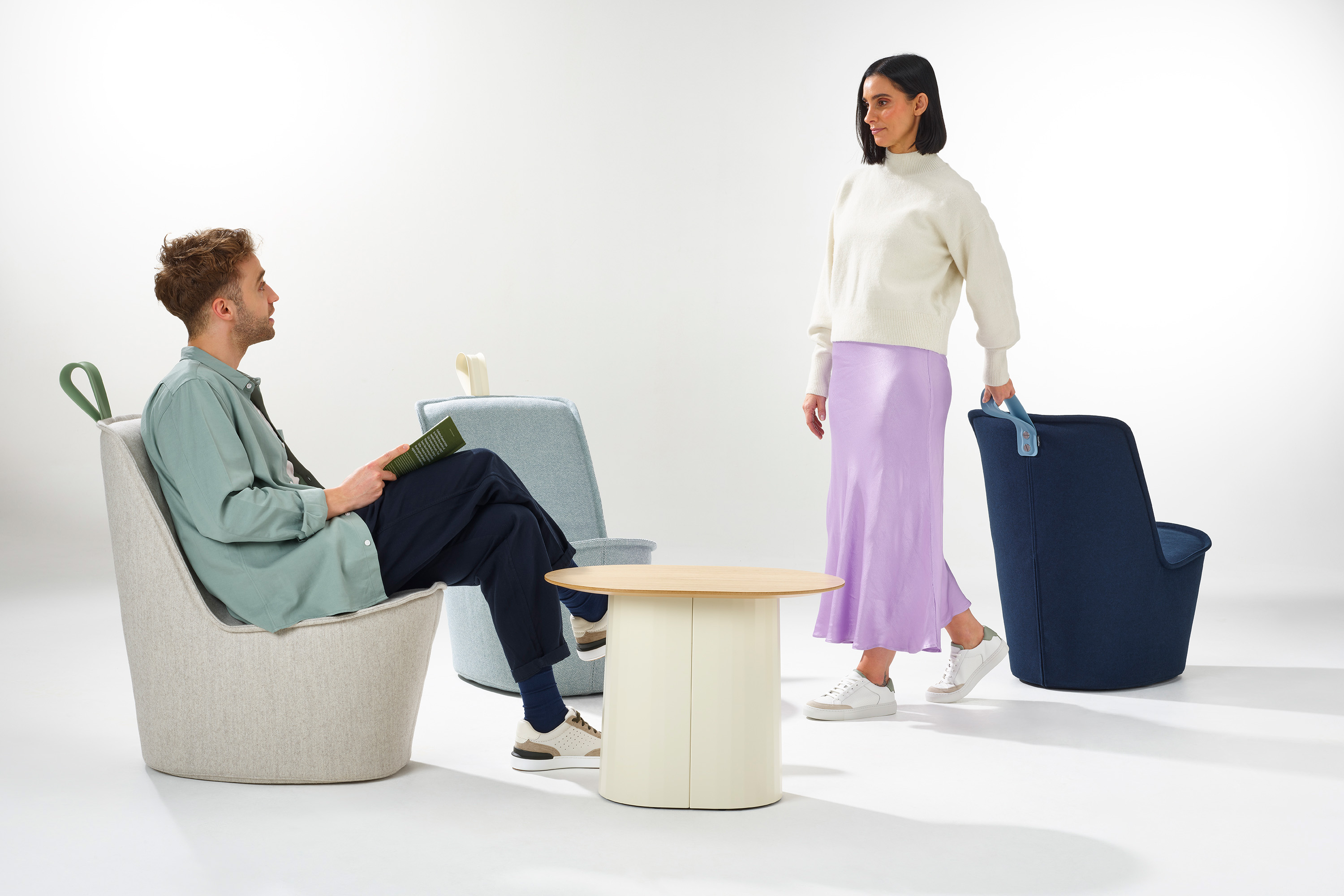 Pippin is the moveable lounge chair with a playful cone-shaped silhouette and a comfortable cupped sit that encourages people to gather where they like and stay awhile when they do. Compact yet solid and stable, its hidden wheels and a fashion-inspired strap handle (both optional) make it easy to slide Pippin to where it’s needed. Move it, twist it, turn it – connecting has never been so much fun.