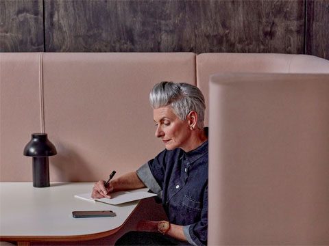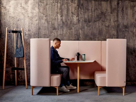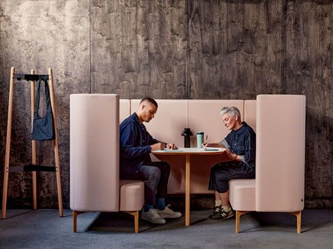 Like the railroad cars that inspired its name, the Pullman Booth provides a bit of privacy in public spaces.