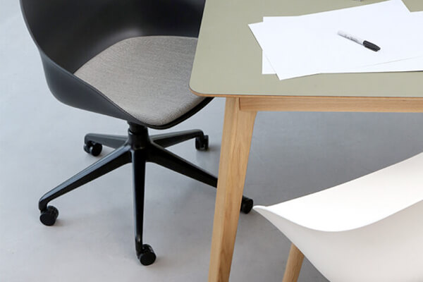 The Ruby Chair's molded polypropylene seat offers both a supportive form and hard wearing, easy-to-clean functionality. With a subtle nod to other seamless one-piece shell chair designs, Ruby distinguishes itself with its wider scooped seat, offered with optional seat pad. Available with a 5-star base and castors.