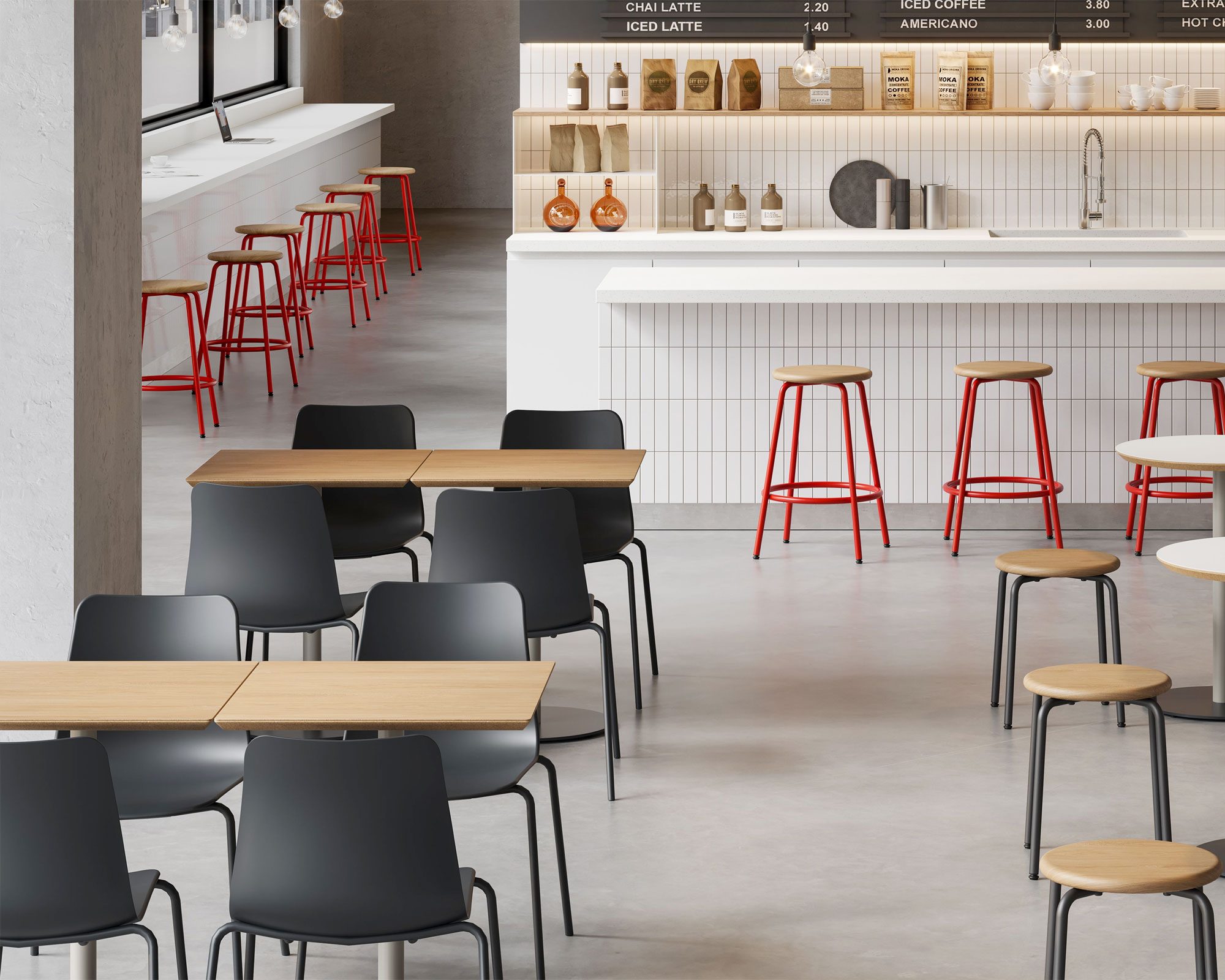 The NaughtOne Tier Table invites people to gather in meeting, dining, educational, and hospitality settings. It’s available in a range of heights and thoughtfully designed with the stem and base scaling in proportion relative to the top. Customise it by choosing between a range of heights and a round or square top, mixing and matching 16 colours for the base and stem, and integrating power directly into the table if needed.