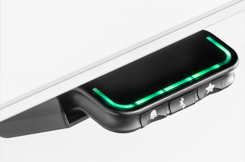 Two electric actuators, connected to a control unit and activated by one Bluetooth control placed under the top, move together and allow to choose the ideal height of the top, from 740 to 1140 mm.