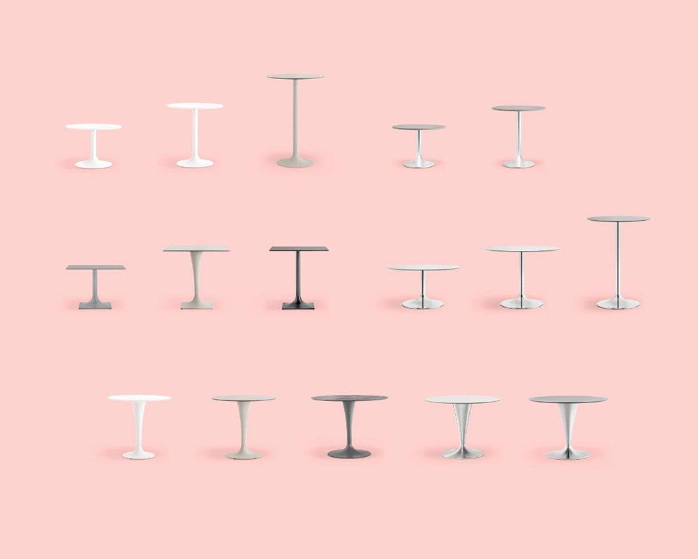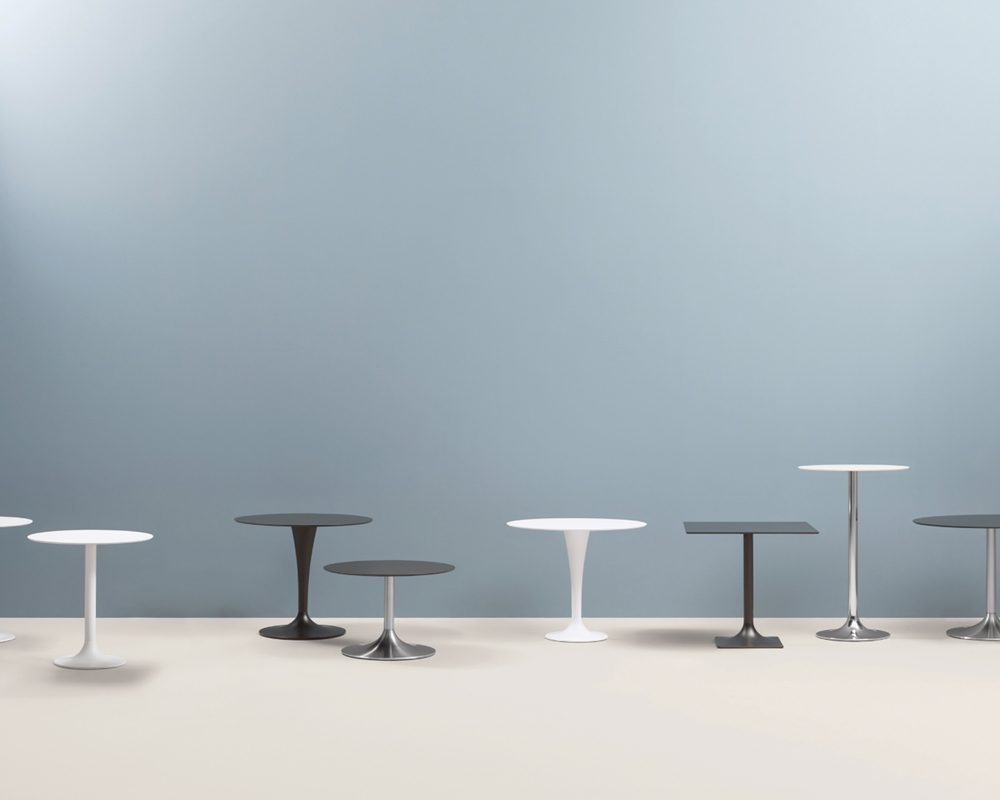 Dream table base, Available in a round and square base version, brushed stainless steel, polished stainless steel base and chromed column