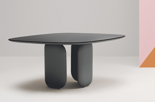 The Elinor table collection, with its soft and curving lines, conveys a refined yet contemporary image.