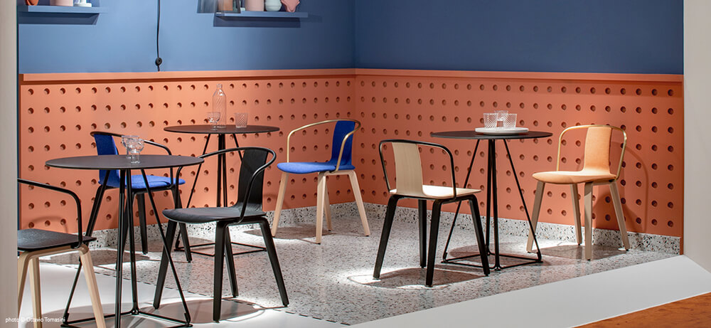 The collection guarantees maximum customisation thanks to the different finishes of the backrest combined with the shell and legs, which can