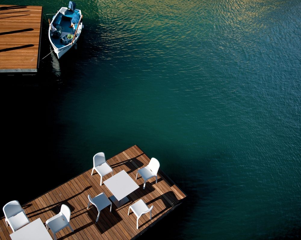 Snow chair, injected polypropylene, lightweight and UV rays resistant, is ideal for outdoor use. Peculiar is the water outflow hole on the seat part.