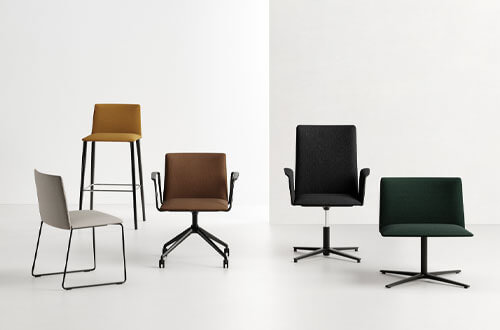 With a serene, light and subtle character, the Stamp collection brings an air of differentiation, authenticity and originality to architectural and interior design projects.The collection is a complete family of upholstered seats, composed of chairs, armchairs and stools that blend in naturally in public, professional and residential surroundings. Clean-lined, contemporary and timeless pieces that infuse a sophisticated mood in the places they inhabit. Creating visual levity.