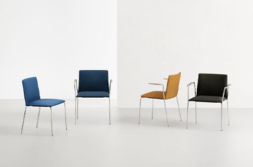 With a serene, light and subtle character, the Stamp collection brings an air of differentiation, authenticity and originality to architectural and interior design projects.The collection is a complete family of upholstered seats, composed of chairs, armchairs and stools that blend in naturally in public, professional and residential surroundings. Clean-lined, contemporary and timeless pieces that infuse a sophisticated mood in the places they inhabit. Creating visual levity.