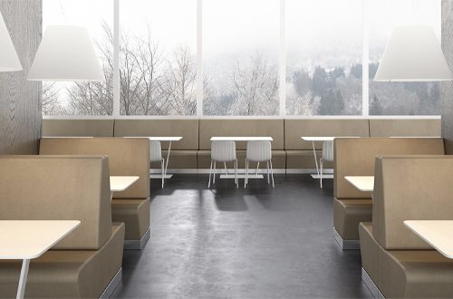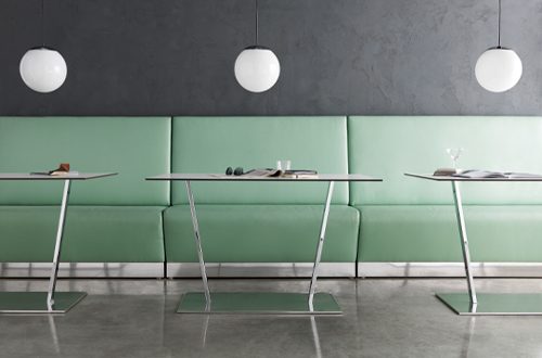 Its angular and linear shapes allow versatile vis à vis or open arrangements which may be enhanced by chic button tufting.