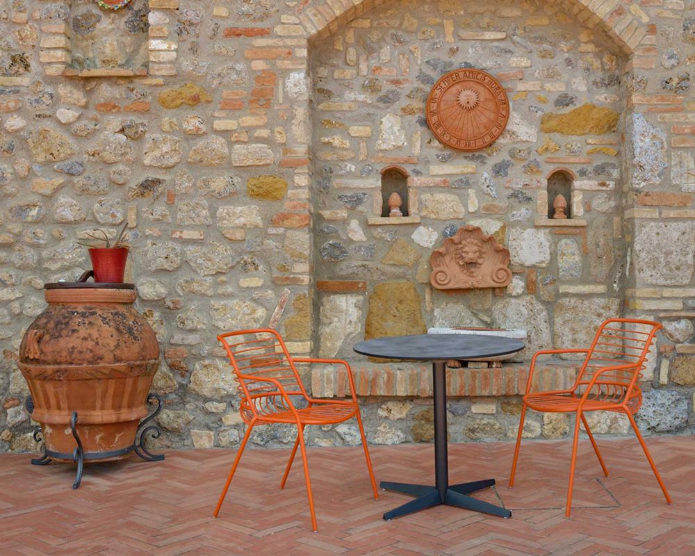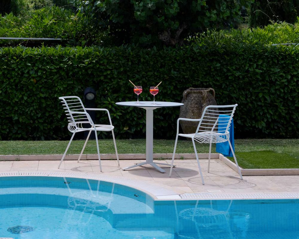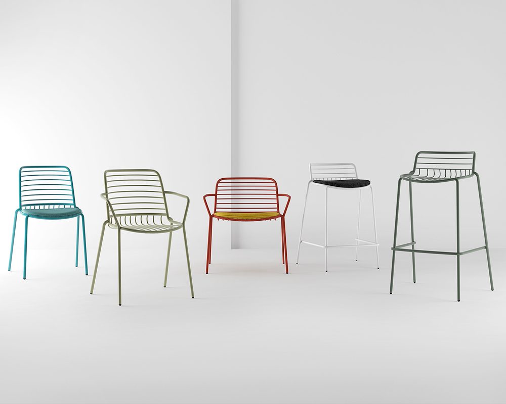 Chair with or without armrests, stool and lounge have functional and essential aesthetic lines, that allow to furnish any type of outdoor space.