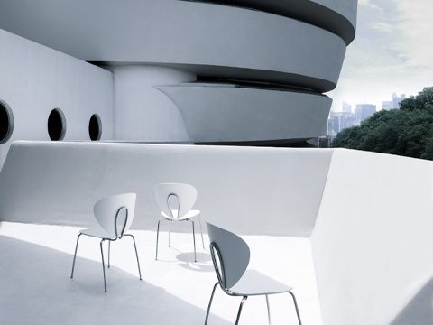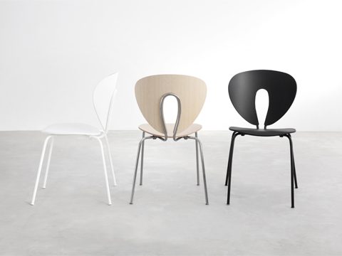 The curved shape of both chair backrest and seat offer an exceptionally comfortable seating position. The expressive, even voluptuous lines of the whole chair are beautifully crafted and smoothly integrated to constitute a design that looks perfectly finished from every angle.