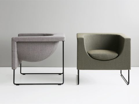 Nube armchair is flat outside, like the walls, and curved inside, like our body.