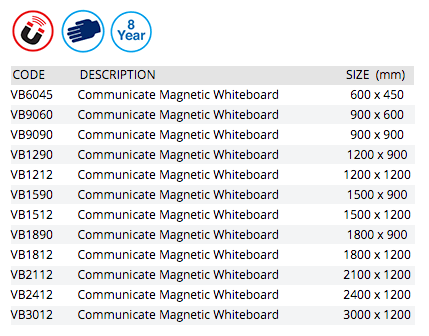 Aluminium frame, concealed corner mounting supplied with pen tray and fixings.