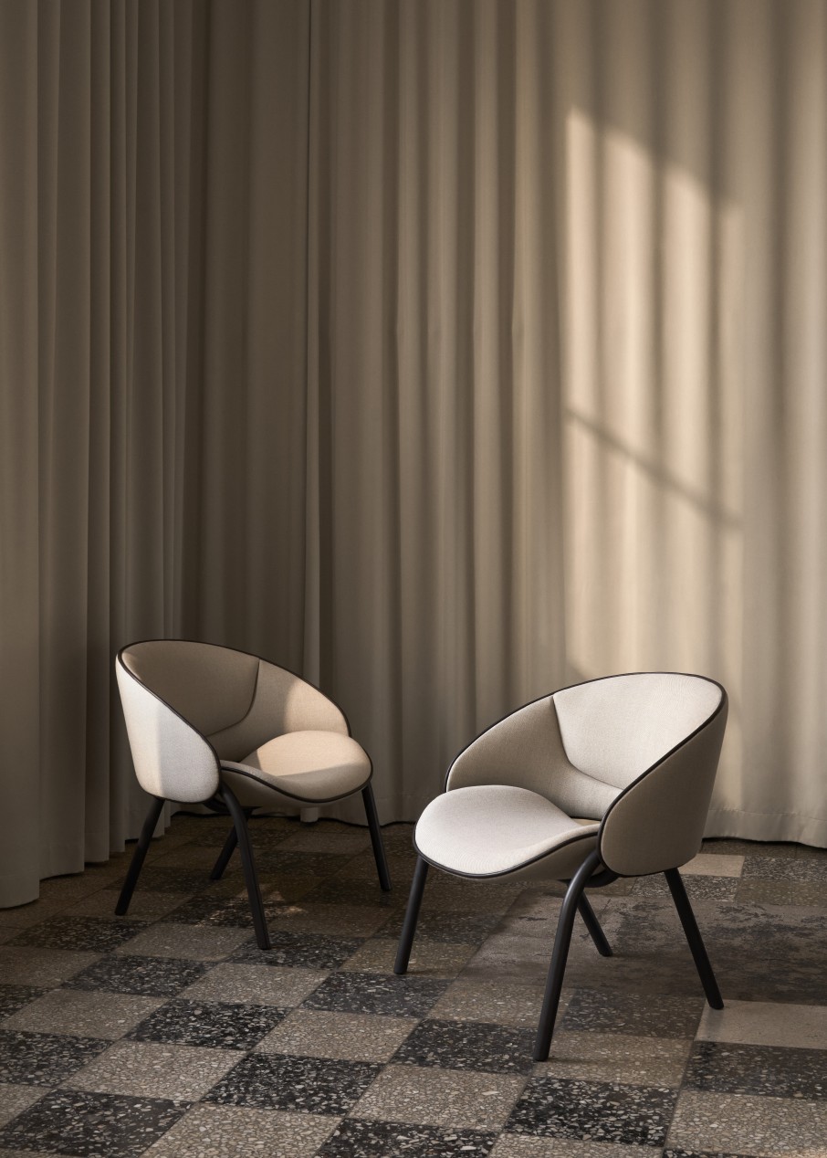 Inspired by nature's foliage, the Folium series spans its character across dining, bar, and lounge seating, all permeated by organic lines and softly enveloping seats, whilst the bold steel base is echoed in the distinctive piping details on the upholstered shell.