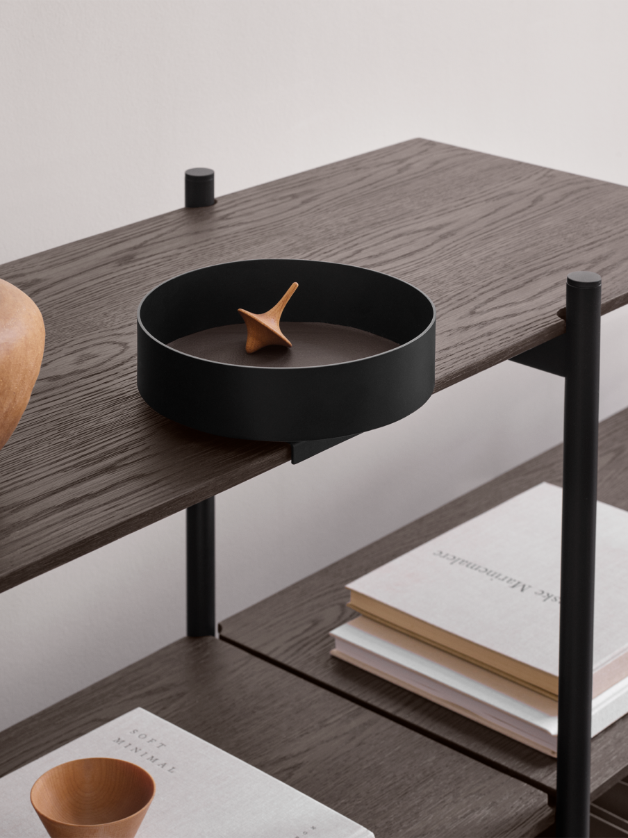 Guided by its simplicity in form and function, the Formal Shelving system by kindred spirit and long-time collaborator, Jonas Wagell, is constructed with only two materials. Choose one of the 17 pre-arranged configurations and elevate the design and functionality further with well-considered complements in the form of trays, magazine stands, and book supports.