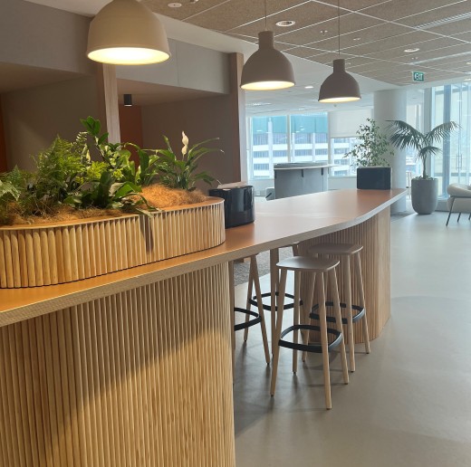 Key featured furniture to fulfil the clients’ expectations include, the Caterpillar Modular Seating by Derlot, the Rosie Leaners by Thinking Works paired with Babila Barstools by Pedrali. The Capsule high back sofas and chairs by Casala provide additional acoustic support and a sense of solitude.