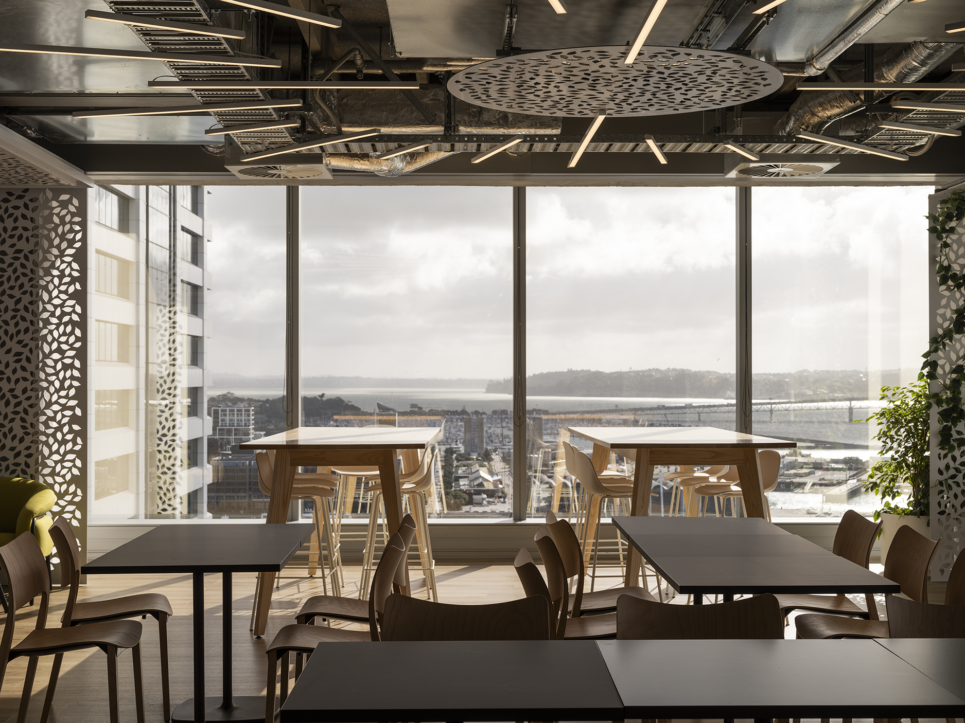 Bell Gully. Level 21 is home to Queens Rooftop & Wineshop, offering breathtaking 270-degree views of the Waitematā Harbour. Unison