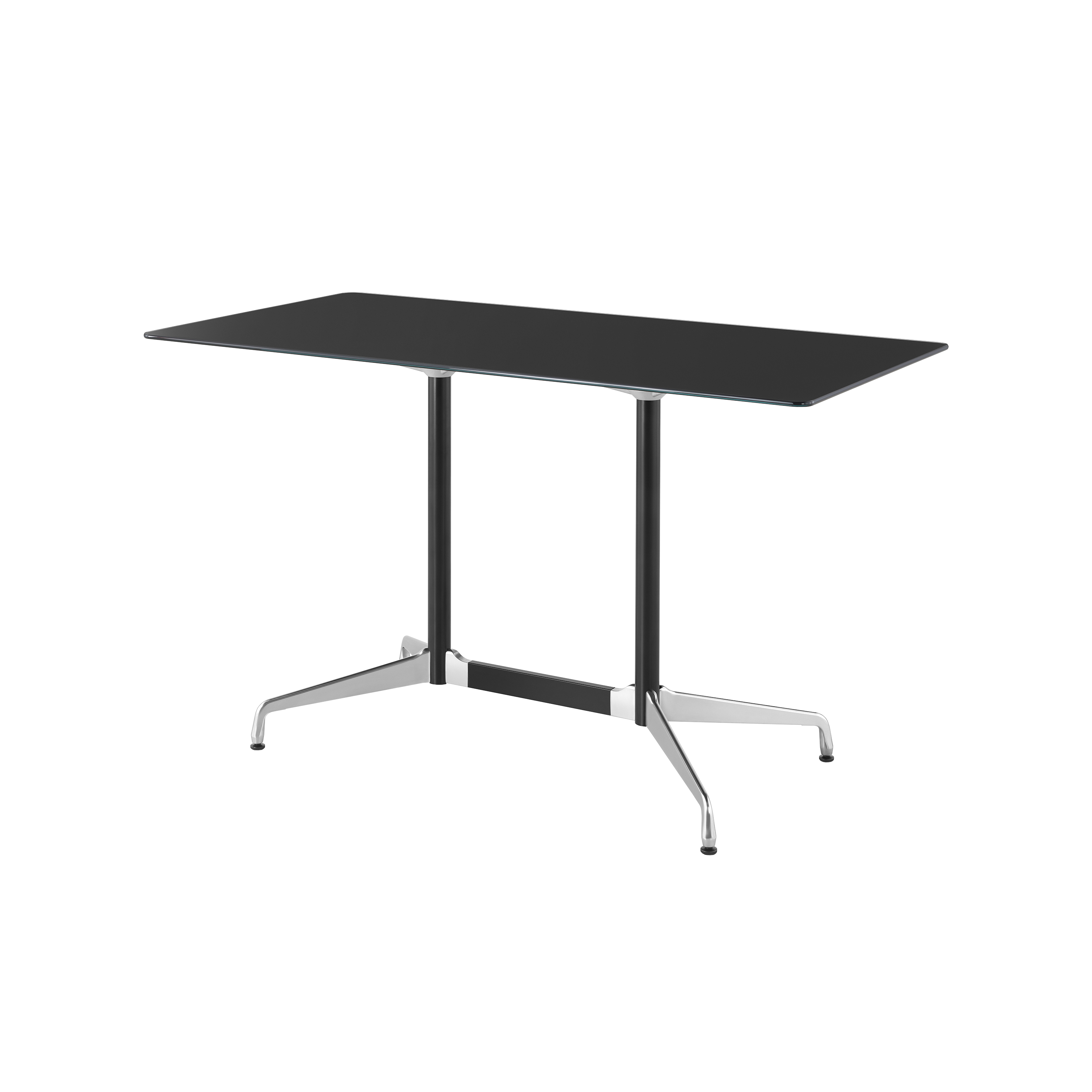 rounded corners and a steel tube column. Available combined with tops of different sizes and finishes, the tables offer versatile solutions
