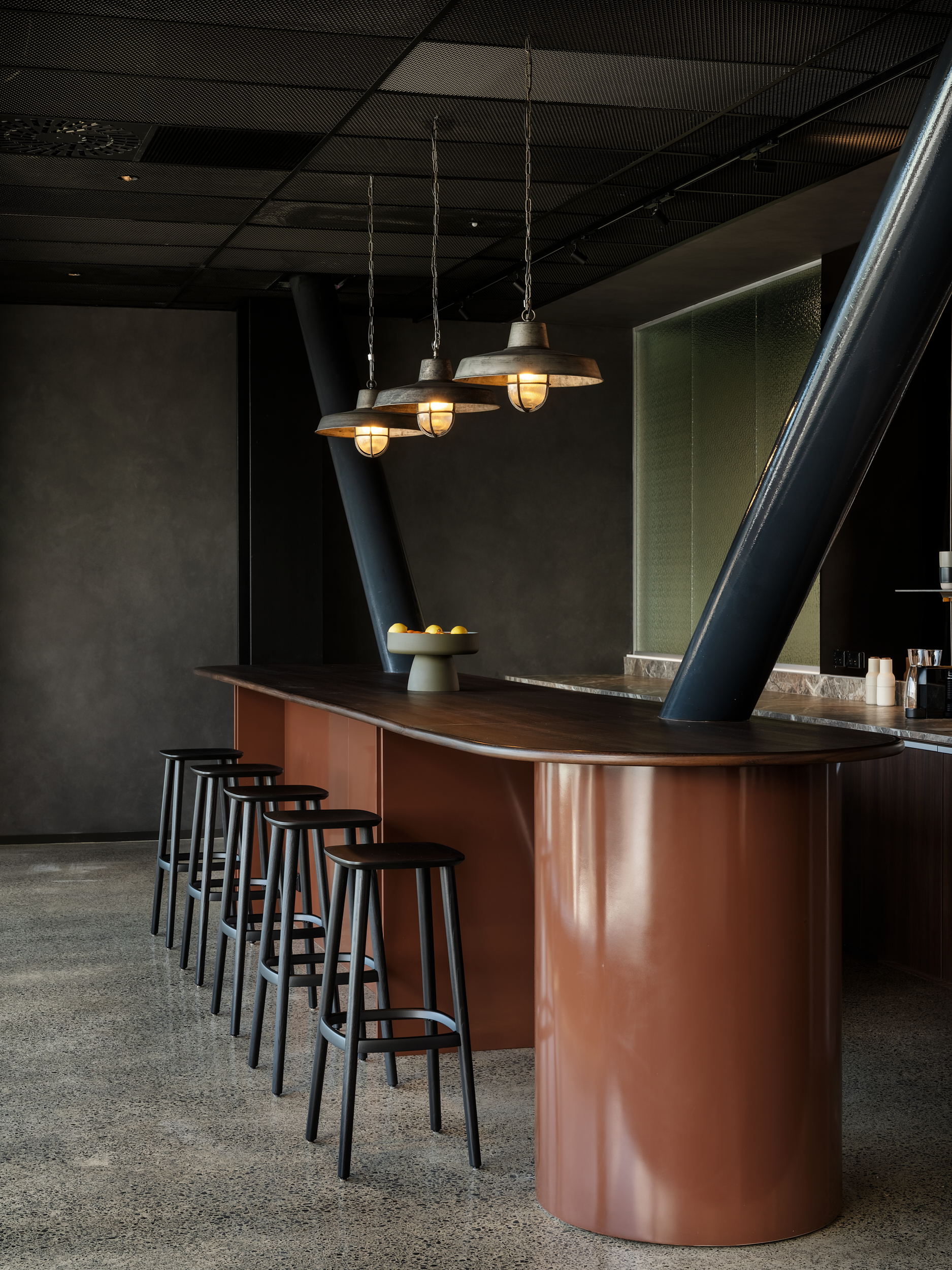 Designed to inspire creativity and support agile modern workstyles, the building incorporates a side‑core layout to maximise openness and natural light. The architecture, led by Warren and Mahoney, draws on the marine heritage of Wynyard Quarter, with an industrial‑context façade featuring a living wall, brick cladding, recessed terrace datum, and glass‑rich upper levels, all grounded in artistic mana whenua detailing. While the base build and interior fitout were delivered by Precinct and their appointed consultants, Unison Spaces was brought in specifically to furnish one of the suites as a test fit—highlighting how interior architecture and furniture can come together to create a cohesive workspace.